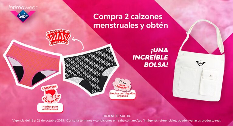 Los intimawear de Saba® son calzones reusables y están diseñados para ser lavados hasta 50 veces, proporcionando una opción sostenible durante tu periodo. Ideal para personas interesadas en ser más amigables con el planeta y vivir de forma más sostenible, los intimawear de Saba® son reusables, lo que significa menos residuos en comparación con el uso de productos menstruales desechables.