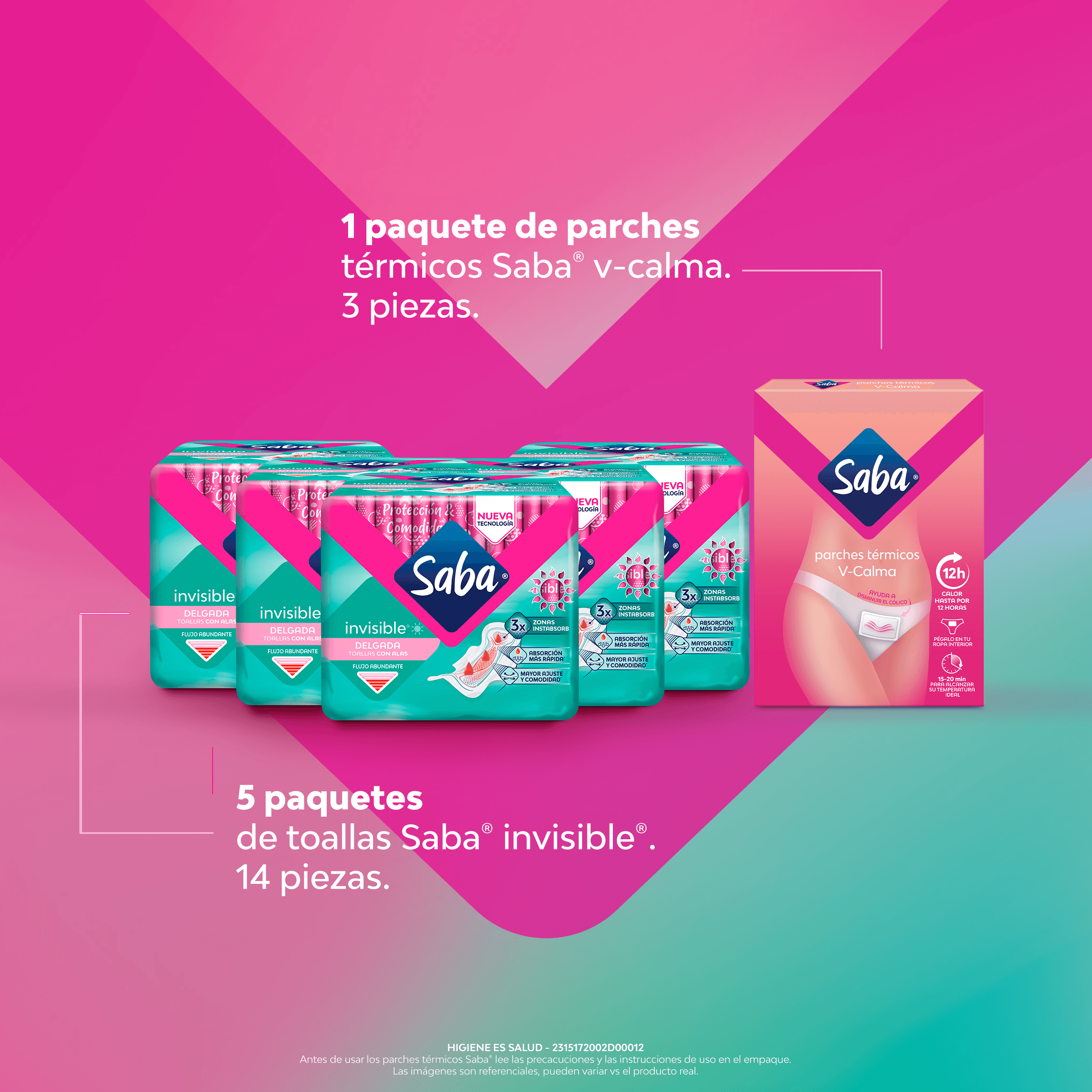 Conoce el Kit Saba® Protección Invisible® que contiene los productos necesarios con mayor ajuste y absorción rápida para sentirte más cómoda y protegida durante esos días incluso los días de mayor flujo.