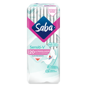 Saba® Sensiti-V® Toalla Ultradelgada Nocturna con Alas Flujo Súper Abundante