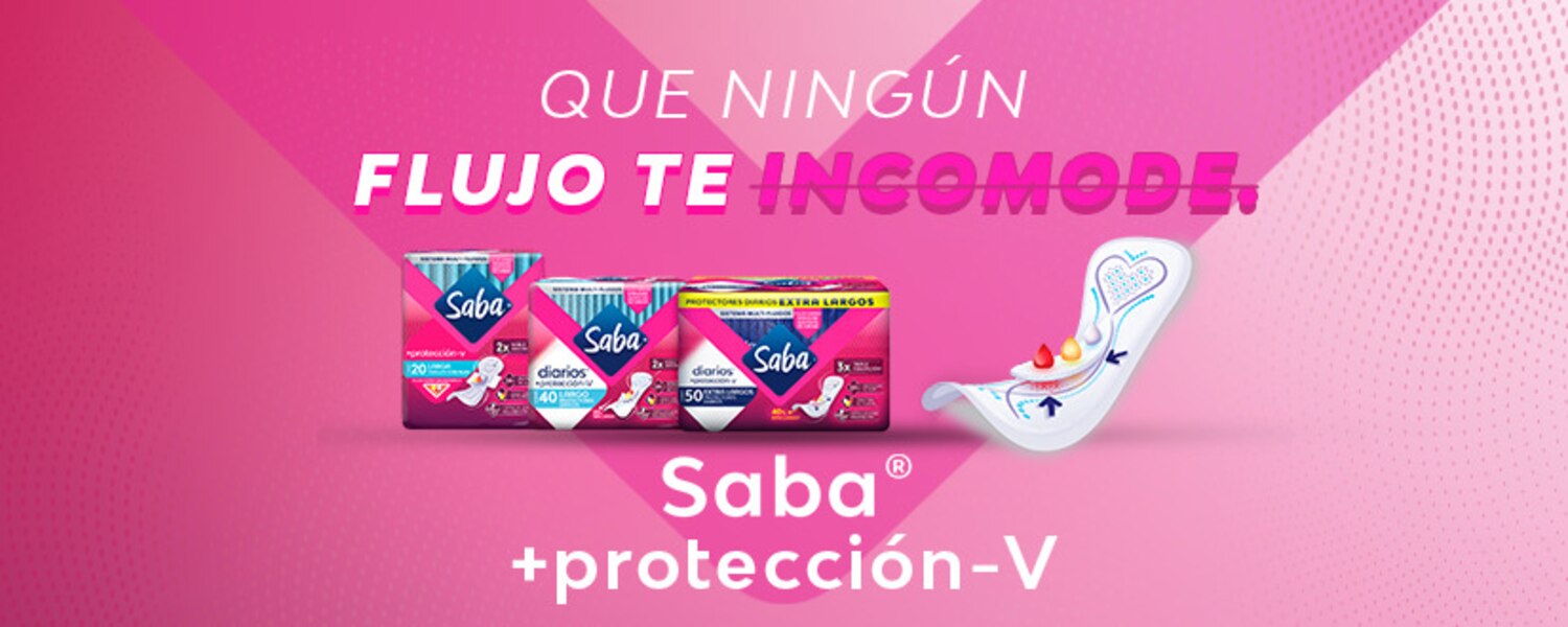 Si tienes incontinencia urinaria, además llegó tu menstruación y no puedes olvidar el flujo diario, Saba® +protección-V es una excelente opción para ti. Sabemos que una de las cosas que más te preocupan es el olor, estas toallas te brindan 24 horas de protección contra el olor, además te da 50% más absorcióngracias a sus cápsulas ultra absorbentes brindándote seguridad y comodidad todo el día y para el resto de los días usa los protectores diarios que son más largos y absorben el doble. Que ningún flujo te detenga.